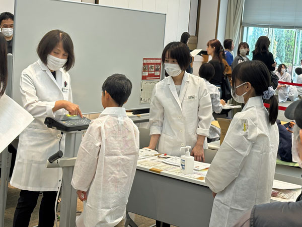 こども薬局では、水剤調剤と分包機操作を体験できます