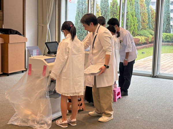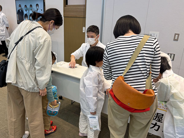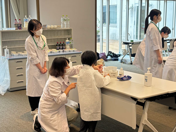 こども薬局では、水剤調剤と分包機操作を体験できます