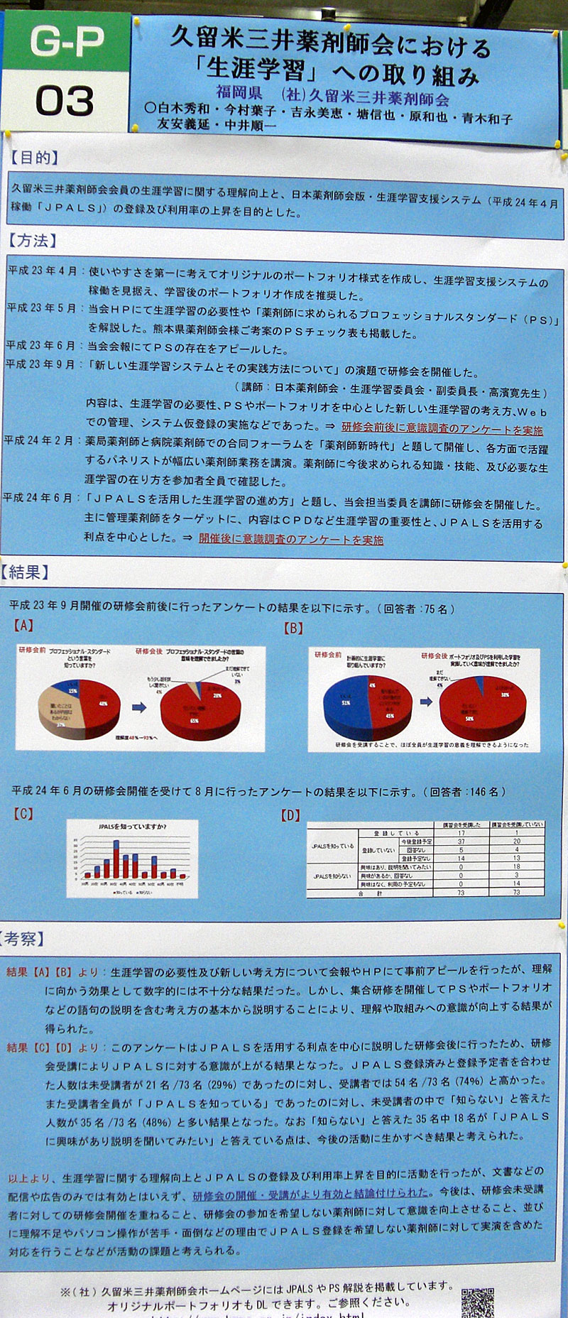 学術研修委員会(白木)より G-P-03 久留米三井薬剤師会における「生涯学習」への取り組み |