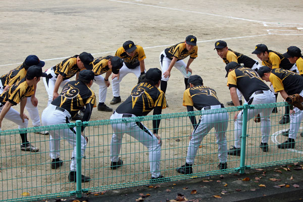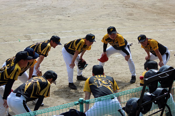 追加点のチャンスでみんなが期待する中、丸田選手打てずで3アウト (もう丸田選手は打ち上げの肉禁止の声が聞こえ苦笑い) |