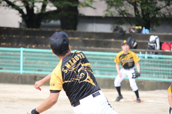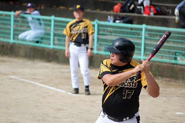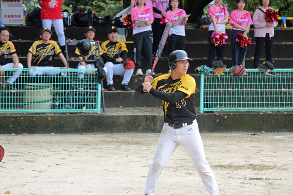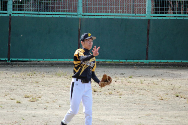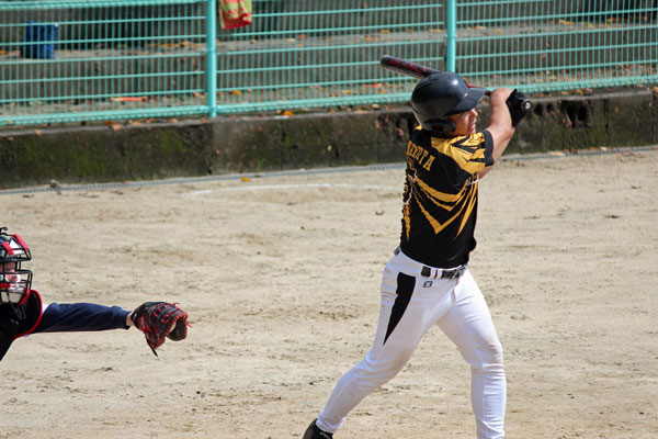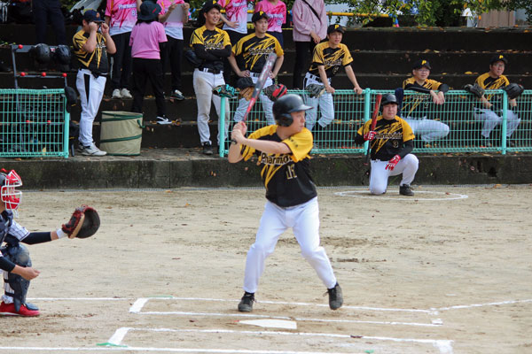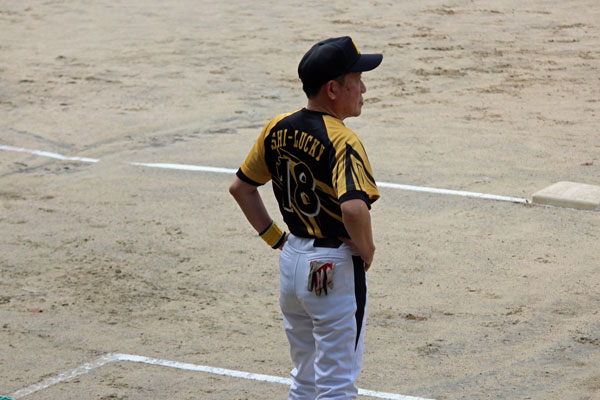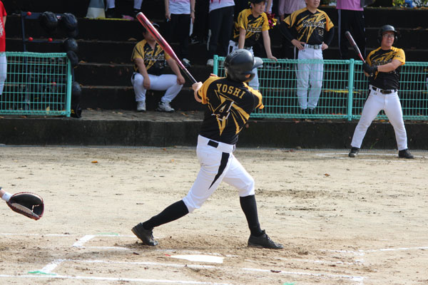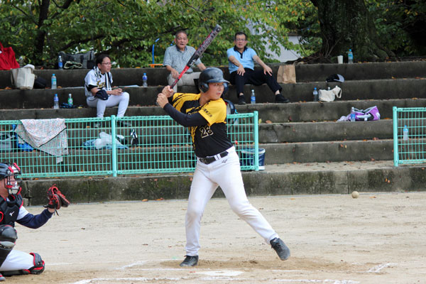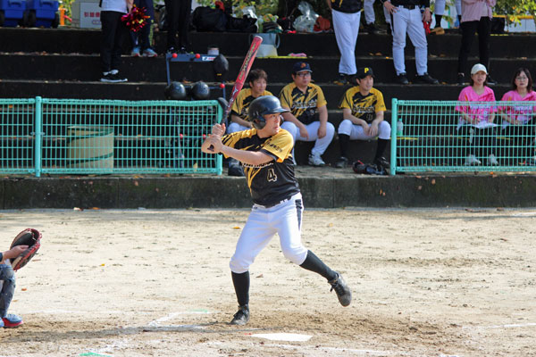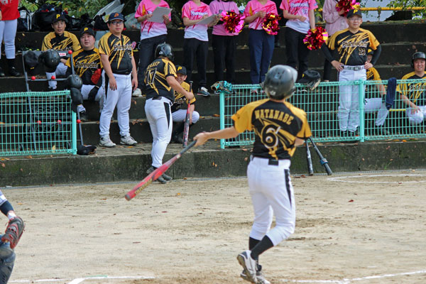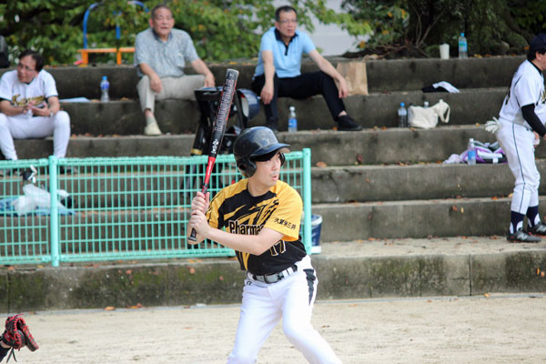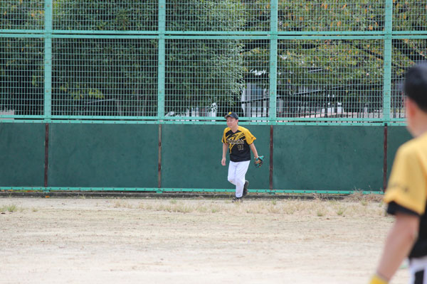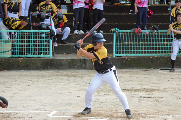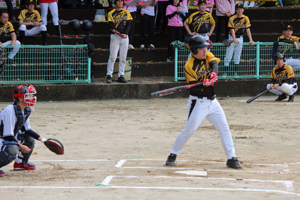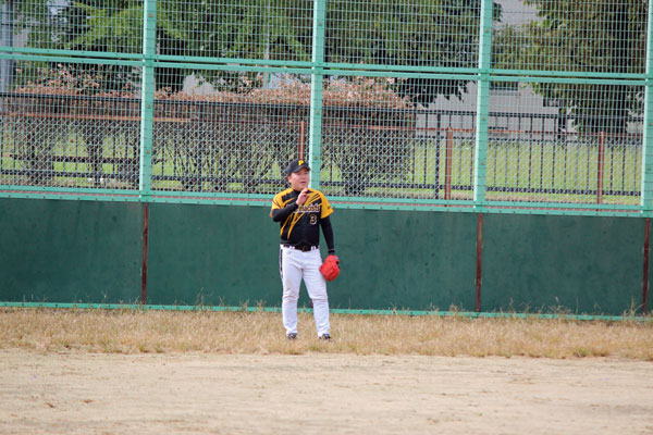 3回裏、子供の運動会から戻った山本選手が復活しボックスに立つも きれいにライトフライで1アウト |
