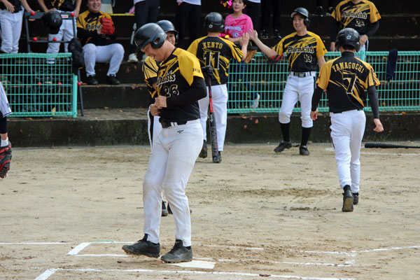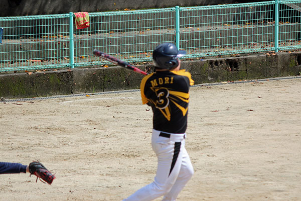 | 4回裏、森選手が見事にソロホームランで1点追加 |
