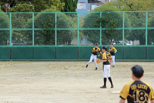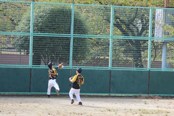 | しかしその後の打者のセンターフライを危なげなく田中選手が キャッチして3アウト |