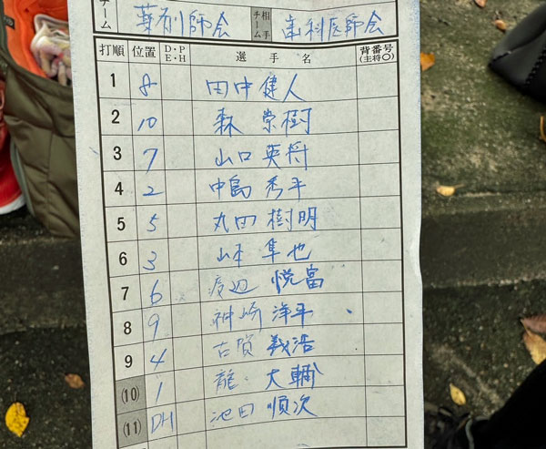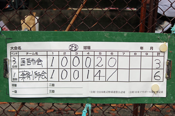 | いきなり1回表から医師会チームのソロホームランで幕開けしたものの、 その後も続いた危機はなんとか抑えました |