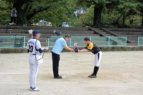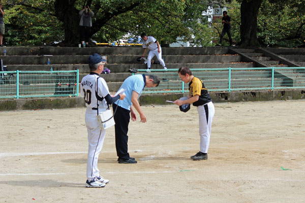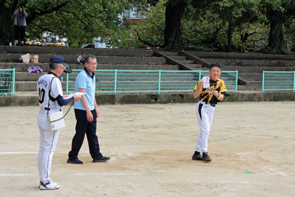 前日の大雨の影響も懸念されましたが、 翌日の試合開始には程よい曇り空の中、 今年も三師会親善ソフトボール大会が開催されました。 監督4年目の古賀選手が発表した今年のスローガンは 「繋げ守護神」 チームの守護神に繋げるためにも高得点を取ろうという心意気の表れです! |